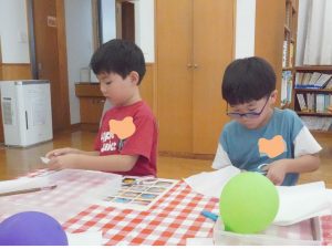 難しい部分は手伝ってもらいながら真剣に取り組んでいました。素敵な作品ができましたよ♪