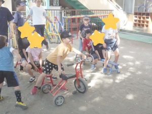 いろいろな乗り物に乗って、3チームに分かれて競争!どのチームが勝ったのかな?