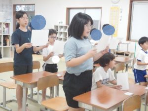 声を合わせて、金子みすゞの”ふしぎ”を大きな声でハキハキ読めましたね!
