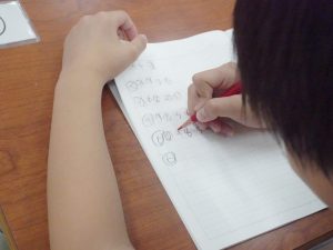 数字を暗記して「はじめ」の言葉で書き始めます。集中して聞いたから丸がいっぱいつけられたね◎
