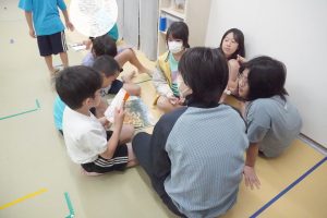 なぞなぞの本を見て、学年関係なく問題を出し合って楽しんでいます♪