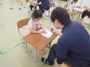 書く前に必ず指でなぞり、書き順や方向、止まる場所を確認!ゆっくり出来るかな?
