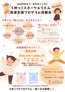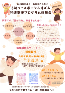 2026年の新年少さん~新年長さん向けの発達支援プログラム体験会を実施します。