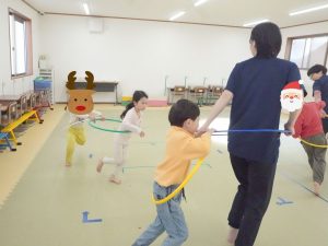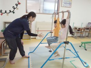 サーキットの鉄棒のぶら下がりでは、 足じゃんけんに挑戦!!みんなは何回先生に勝てるかな✊✌✋