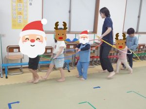 サーキットの鉄棒のぶら下がりでは、 足じゃんけんに挑戦!!みんなは何回先生に勝てるかな✊✌✋