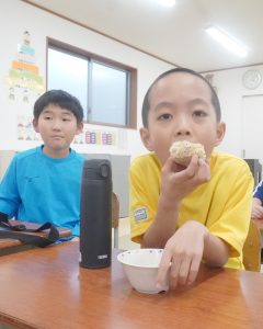 また、日課の前には【おやつ】を提供しています。メニューはおにぎりだけでなく、ラスクや焼きそば、ゼリーなど、豊富なバリエーションがあります☆